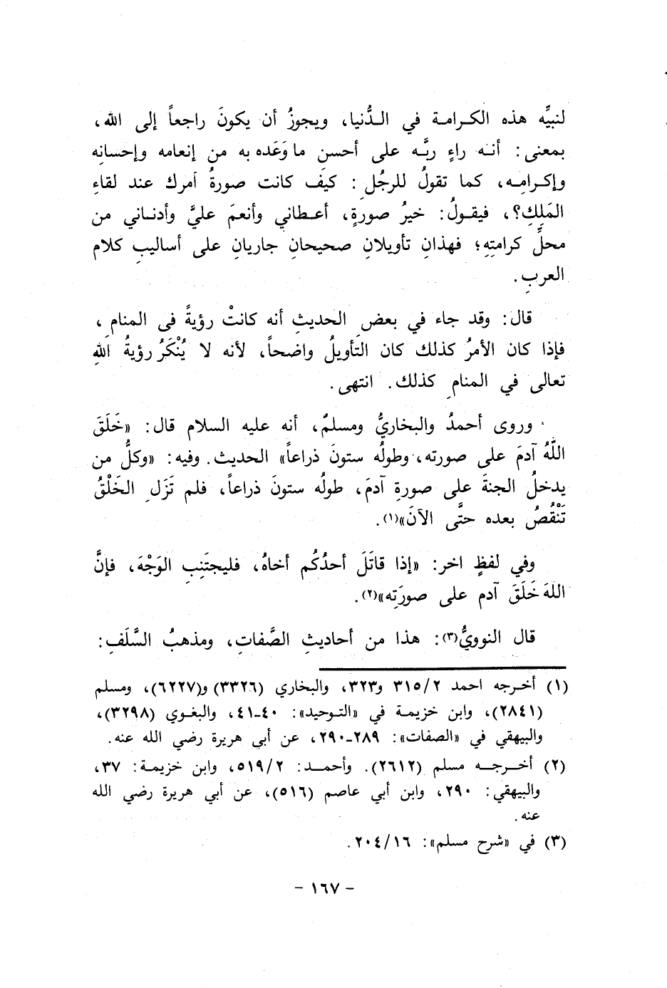 قَالَ النَّوَوِيّ هَذَا من أَحَادِيث الصِّفَات وَمذهب السّلف