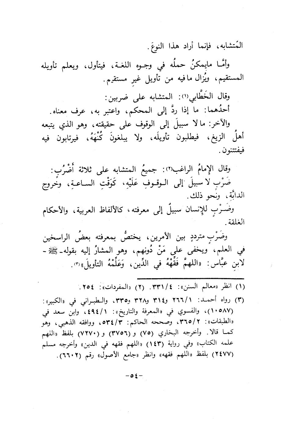 وَضرب مُتَرَدّد بَين الْأَمريْنِ يخْتَص بمعرفته بعض الراسخين فِي الْعلم وَيخْفى على من دونهم وَهُوَ الْمشَار إِلَيْهِ بقوله صلى الله عَلَيْهِ وَسلم لِابْنِ عَبَّاس اللَّهُمَّ فقهه فِي الدّين وَعلمه التَّأْوِيل