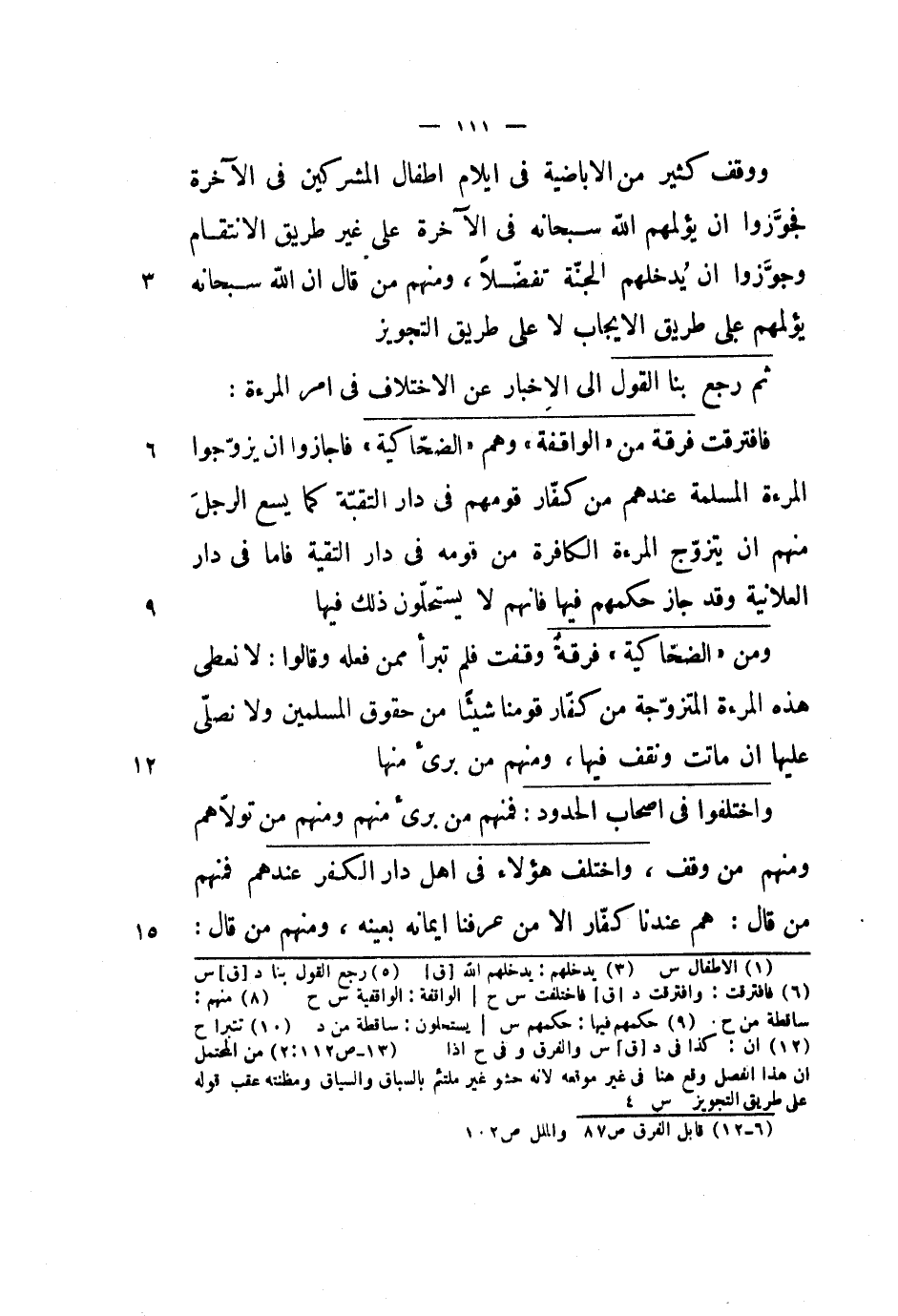 ومن الضحاكية فرقة وقفت فلم تبرأ ممن فعله وقالوا: لا نعطي هذه المرأة المتزوجة من كفار قومنا شيئاً من حقوق المسلمين ولا نصلي عليها إن ماتت ونقف فيها، ومنهم من برئ منها.