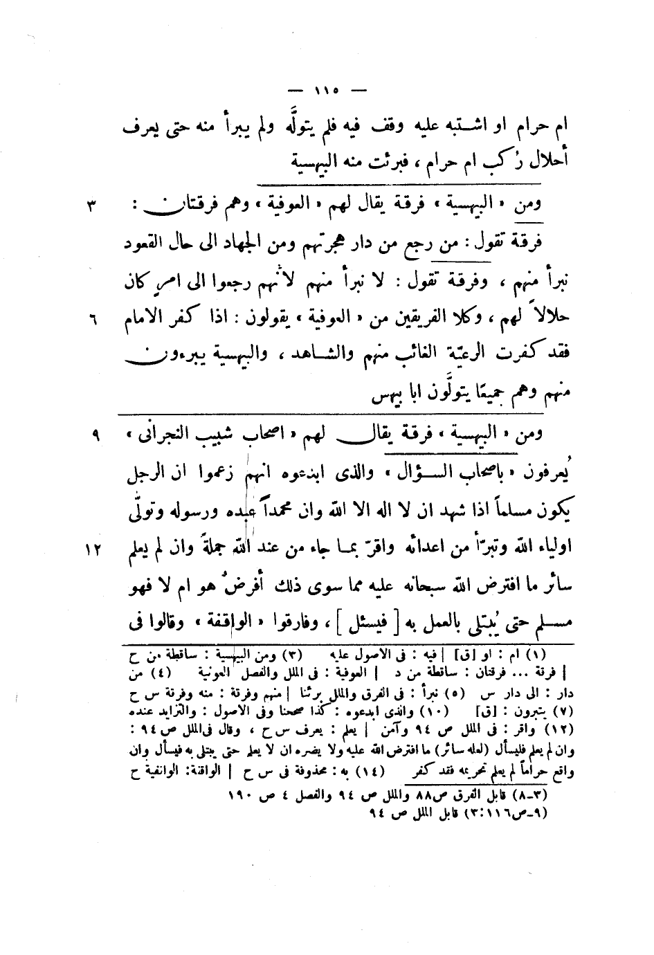 أم حرام أو اشتبه عليه وقف فيه فلم يتوله ولم يبرأ منه حتى يعرف أحلال ركب أم حرام، فبرئت منه البيهسية.