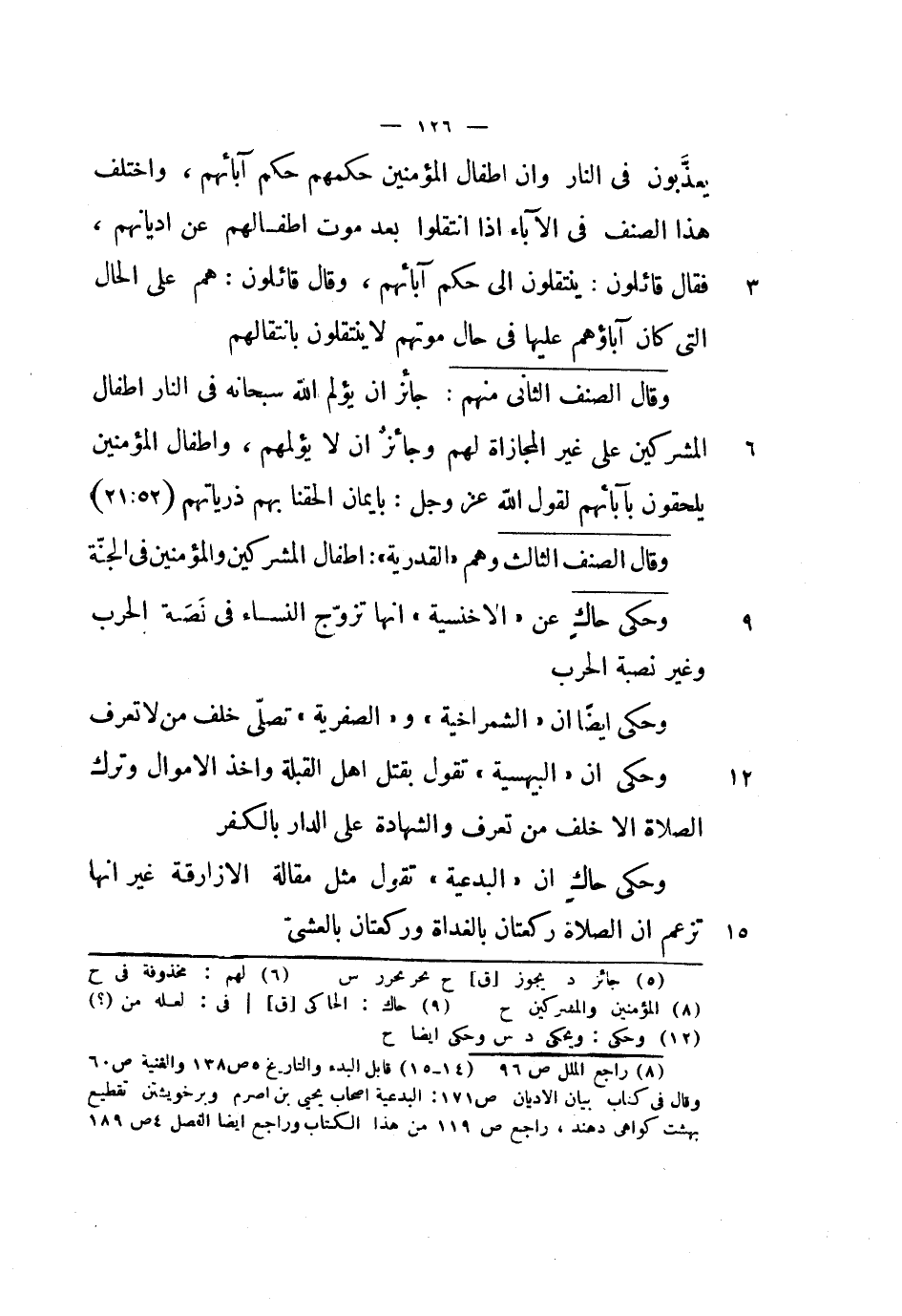 وحكى حاك أن البدعية تقول مثل مقالة الأزارقة غير أنها تزعم أن الصلاة ركعتان بالغداة وركعتان بالعشي.