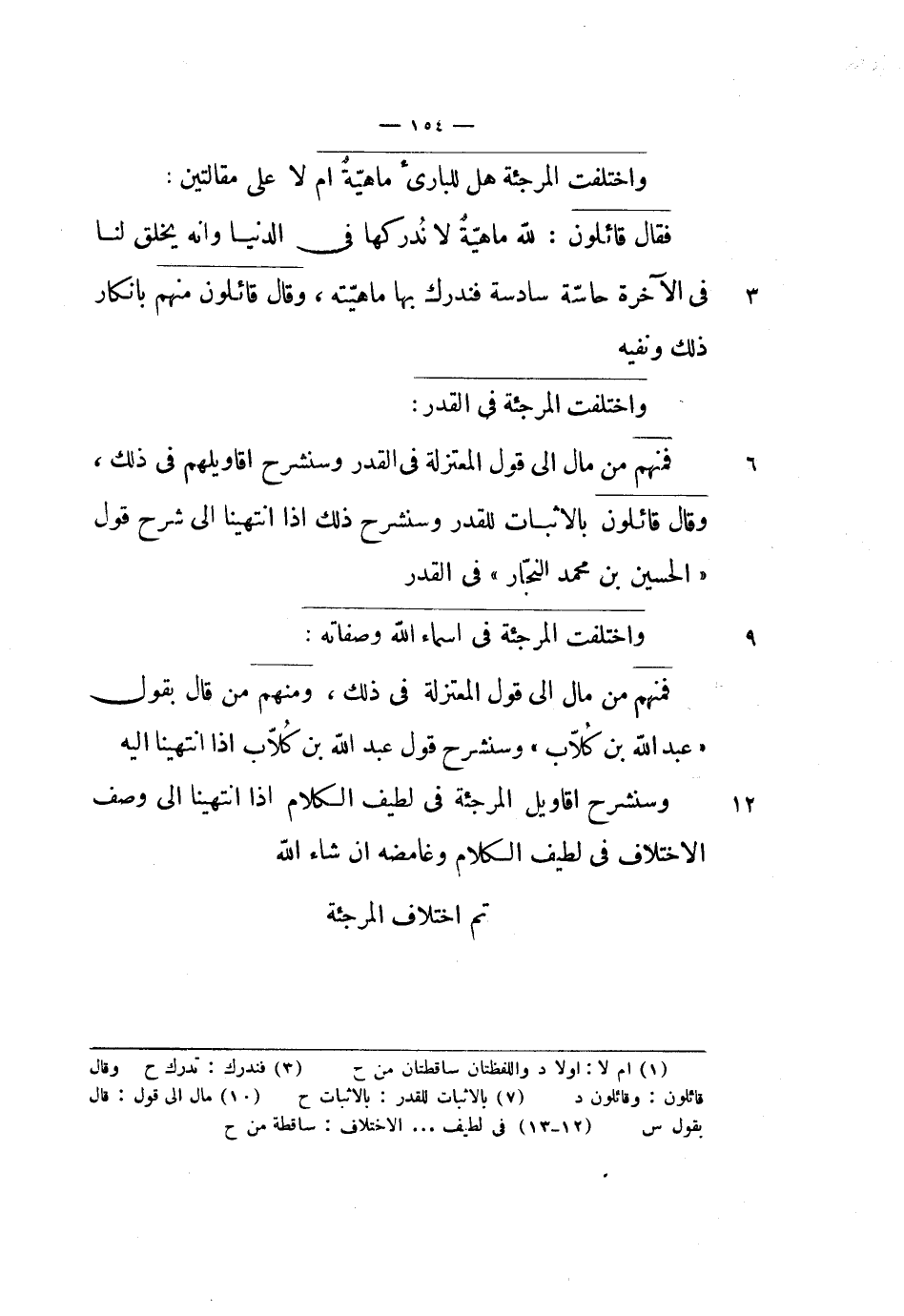 فمنهم من مال إلى قول المعتزلة في ذلك، ومنهم من قال بقول عبد الله بن كلاب وسنشرح قول عبد الله بن كلاب إذا انتهينا إليه وسنشرح أقاويل المرجئة في لطيف الكلام إذا انتهينا إلى وصف الاختلاف في لطيف الكلام وغامضه إن شاء الله.