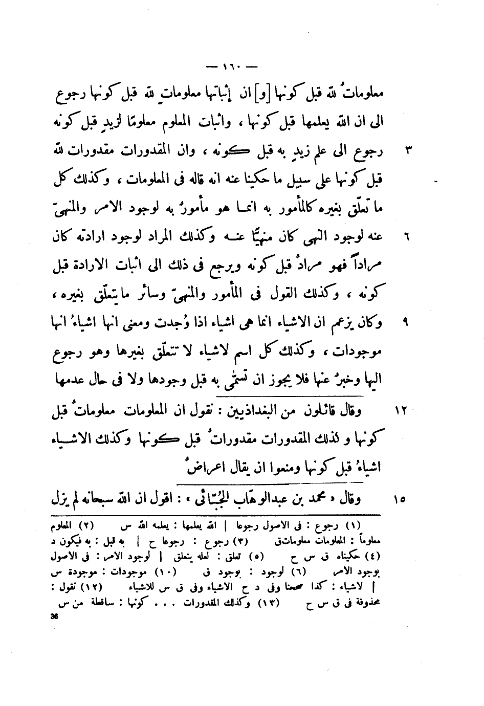 معلومات لله قبل كونها وأن إثباتها معلومات لله قبل كونها رجوع إلى أن الله يعلمها قبل كونها، وإثبات المعلوم معلوماً لزيد قبل كونه رجوع