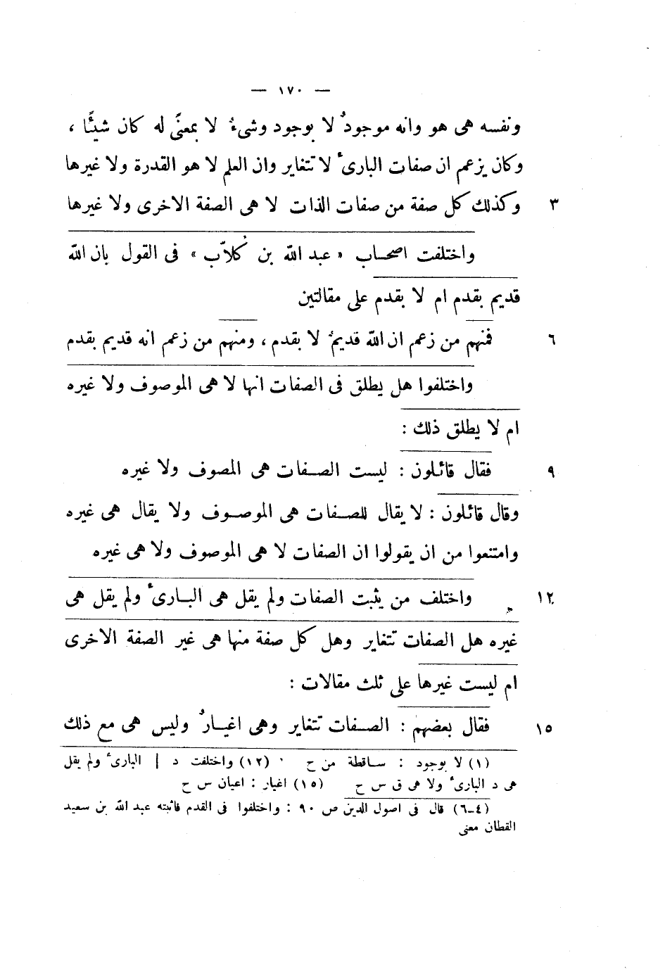 واختلفت أصحاب عبد الله بن كلاب في القول بأن الله قديم بقدم أم لا بقدم على مقالتين: