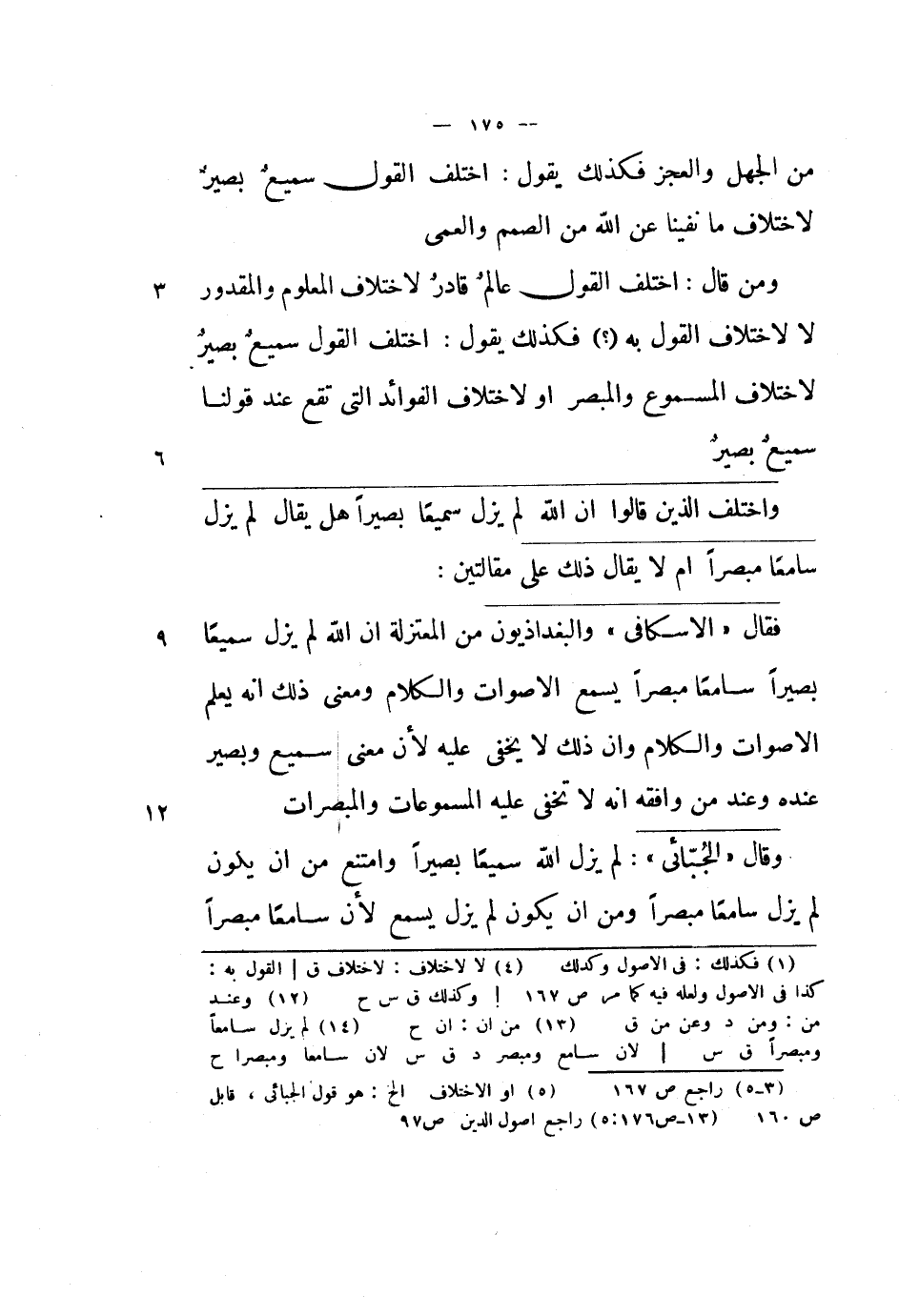 ومن قال: اختلف القول عالم قادر لاختلاف المعلوم والمقدور لا لاختلاف القول به فكذلك يقول: اختلف القول سميع بصير لاختلاف المسموع والمبصر أو