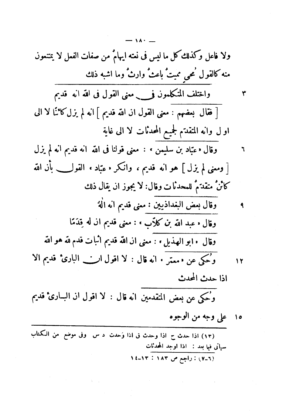 وقال عباد بن سليمان: معنى قولنا في الله أنه قديم أنه لم يزل ومعنى لم يزل هو أنه قديم، وأنكر عباد القول بأن الله كائن متقدم للمحدثات وقال: لا يجوز أن يقال ذلك.
