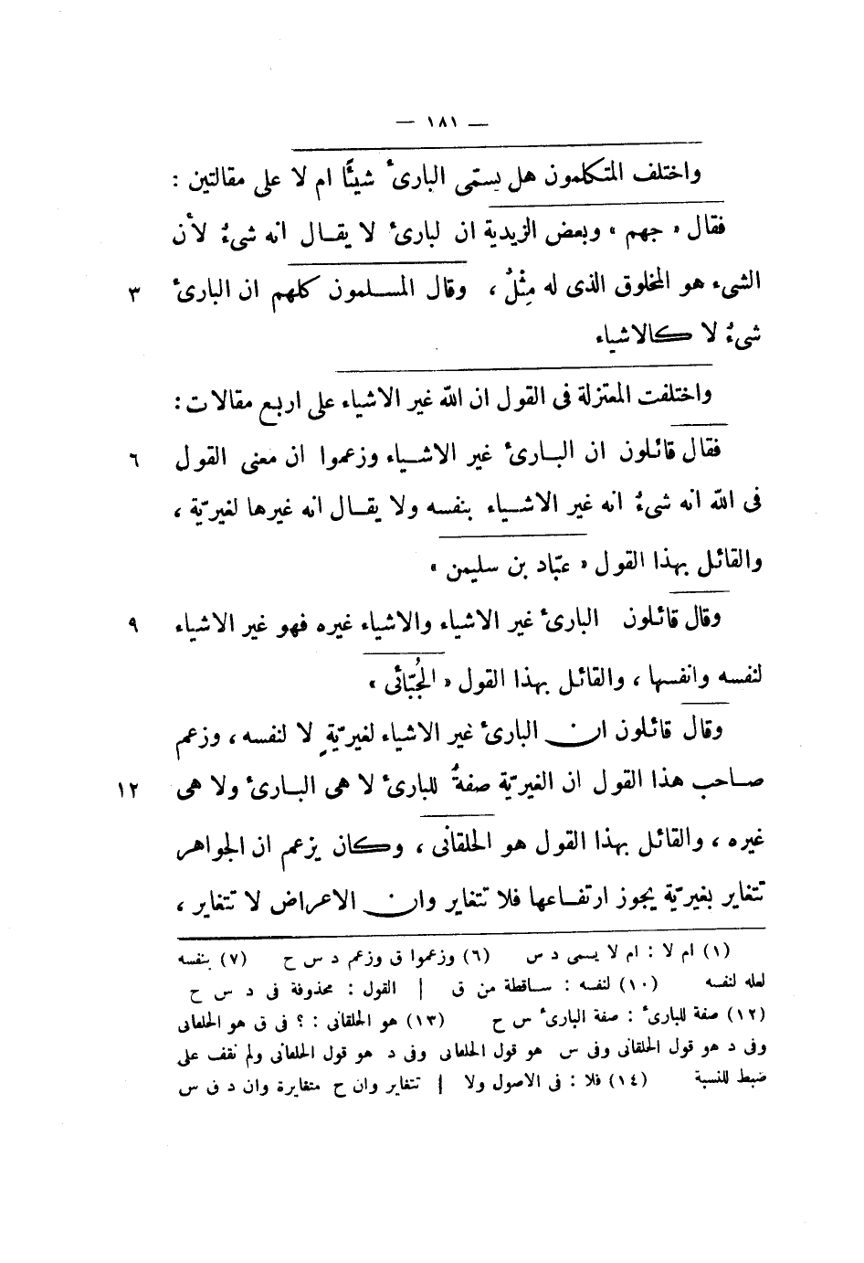 فقال قائلون أن البارئ غير الأشياء وزعموا أن معنى القول في الله أنه شيء أنه غير الأشياء بنفسه ولا يقال أنه غيرها لغيرية، والقائل بهذا القول عباد بن سليمان.