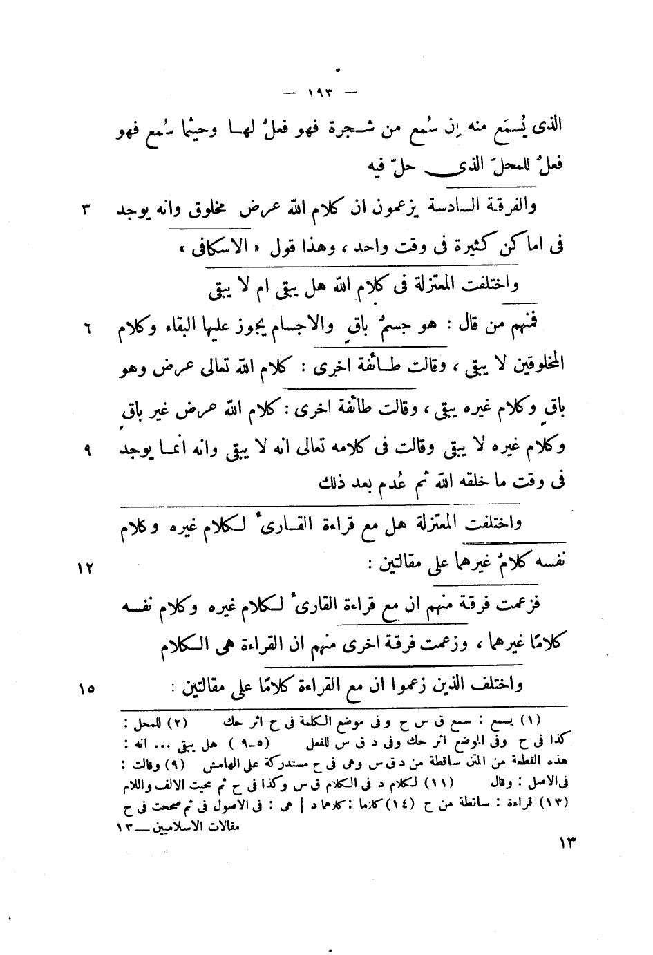 فزعمت فرقة منهم أن مع قراءة القارئ لكلام غيره وكلام نفسه كلاماً غيرهما، وزعمت فرقة أخرى منهم أن القراءة هي الكلام.