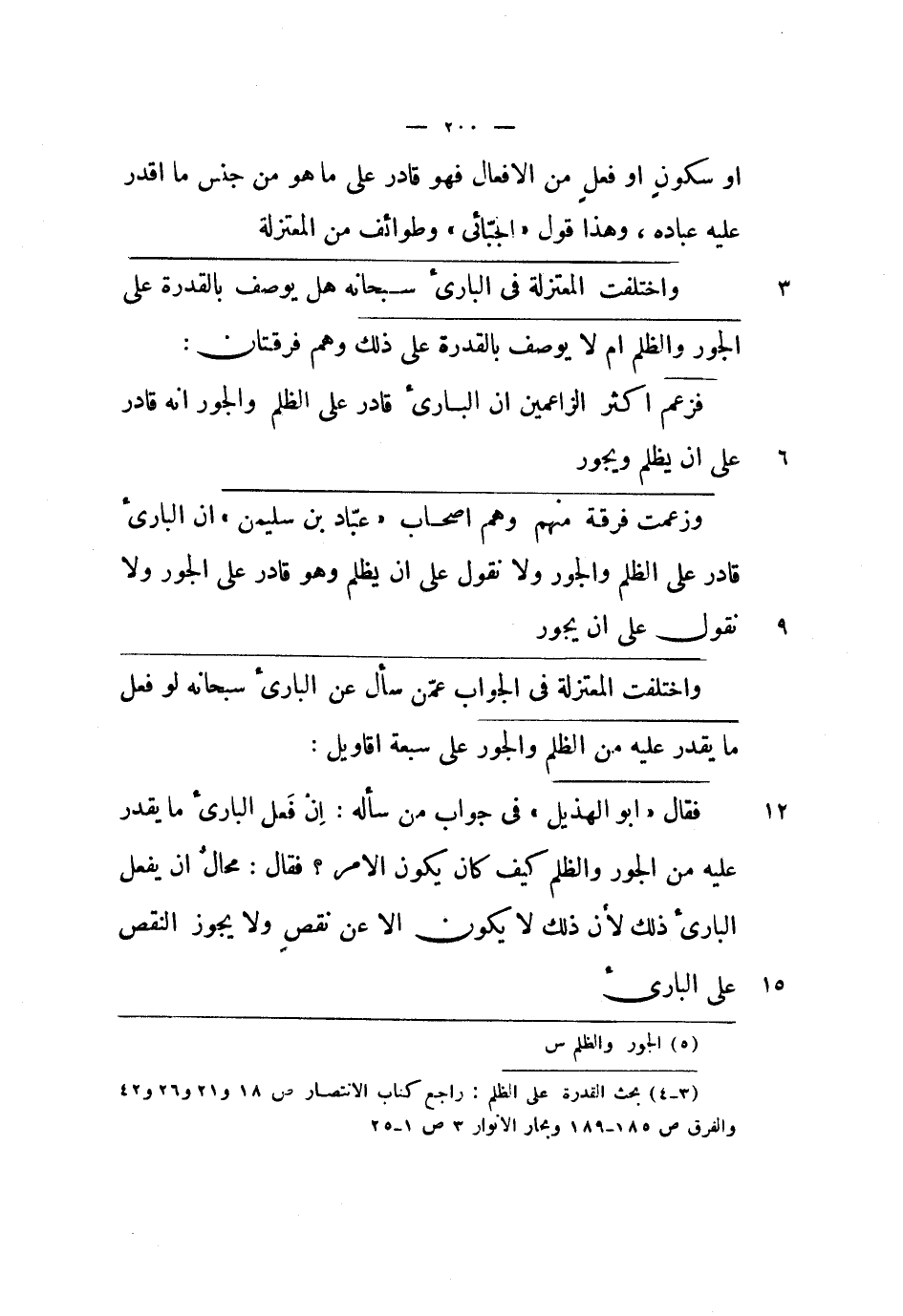 واختلفت المعتزلة في البارئ سبحانه هل يوصف بالقدرة على الجور والظلم أم لا يوصف بالقدرة على ذلك وهم فرقتان: