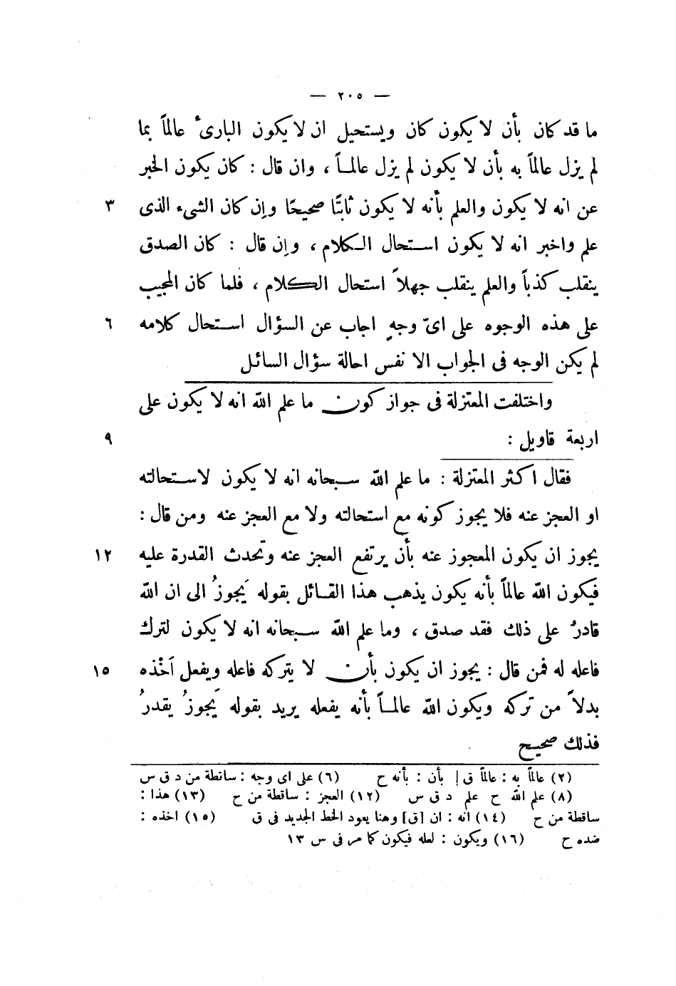 واختلفت المعتزلة في جواز كون ما علم الله أنه لا يكون على أربعة أقاويل:
