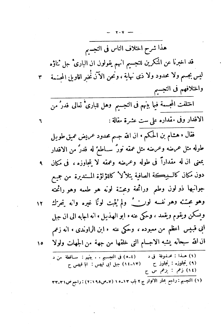 قد أخبرنا عن المنكرين للتجسيم أنهم يقولون أن البارئ جل ثناؤه ليس بجسم ولا محدود ولا ذي نهاية، ونحن الآن نخبر أقاويل المجسمة واختلافهم في التجسيم.