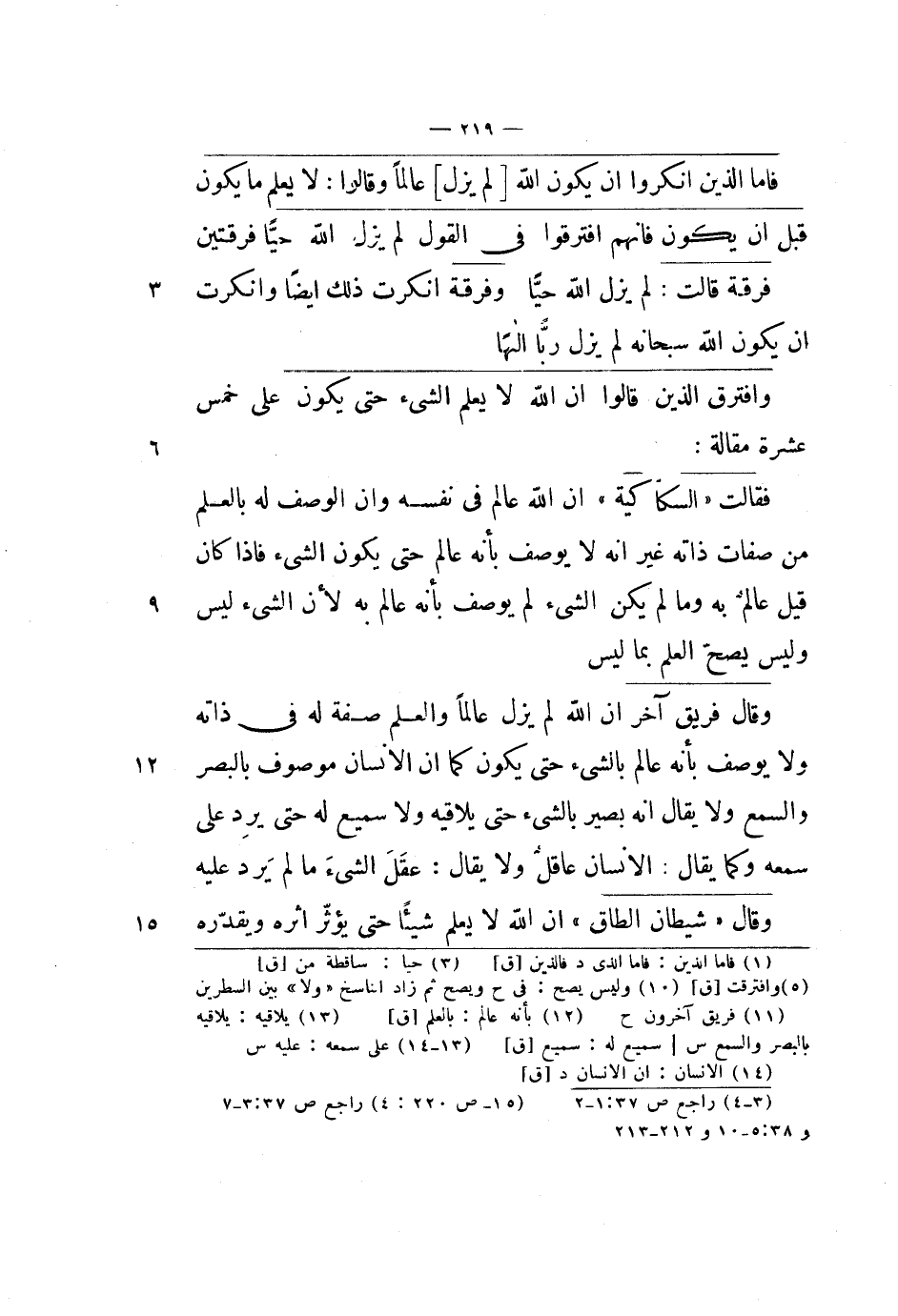 وافترق الذين قالوا أن الله لا يعلم الشيء حتى يكون على خمس عشرة مقالة: