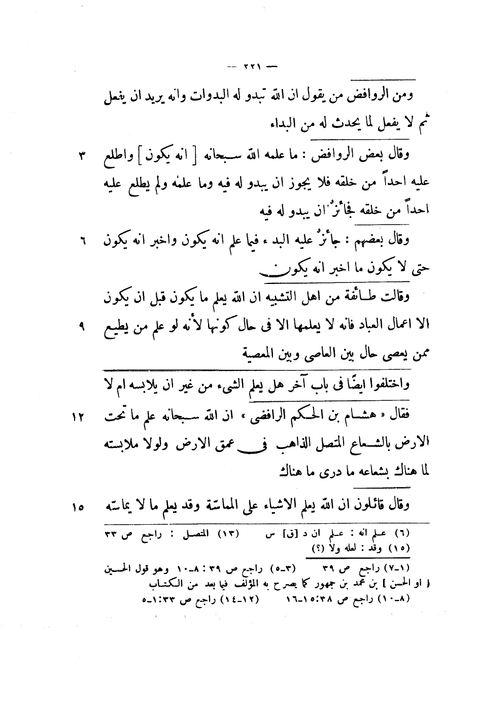 وقال قائلون أن الله يعلم الأشياء على المماسة وقد يعلم ما لا يماسه.