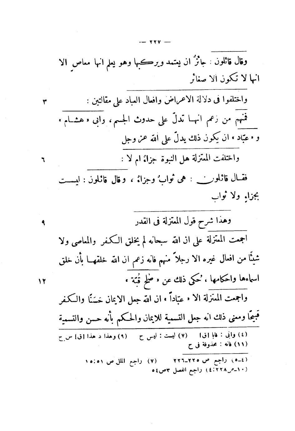 أجمعت المعتزلة على أن الله سبحانه لم يخلق الكفر والمعاصي ولا شيئاً من أفعال غيره إلا رجلاً منهم فإنه زعم أن الله خلقها بأن خلق أسماءها وأحكامها، حكي ذلك عن صالح قبة.