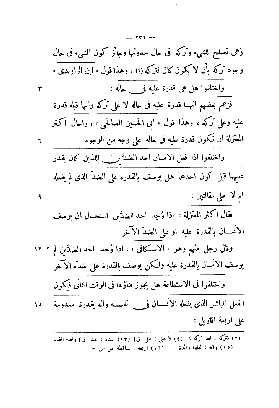 واختلفوا في الاستطاعة هل يجوز فناؤها في الوقت الثاني فيكون الفعل المباشر الذي يفعله الإنسان في نفسه وأنه بقدرة معدومة على أربعة أقاويل: