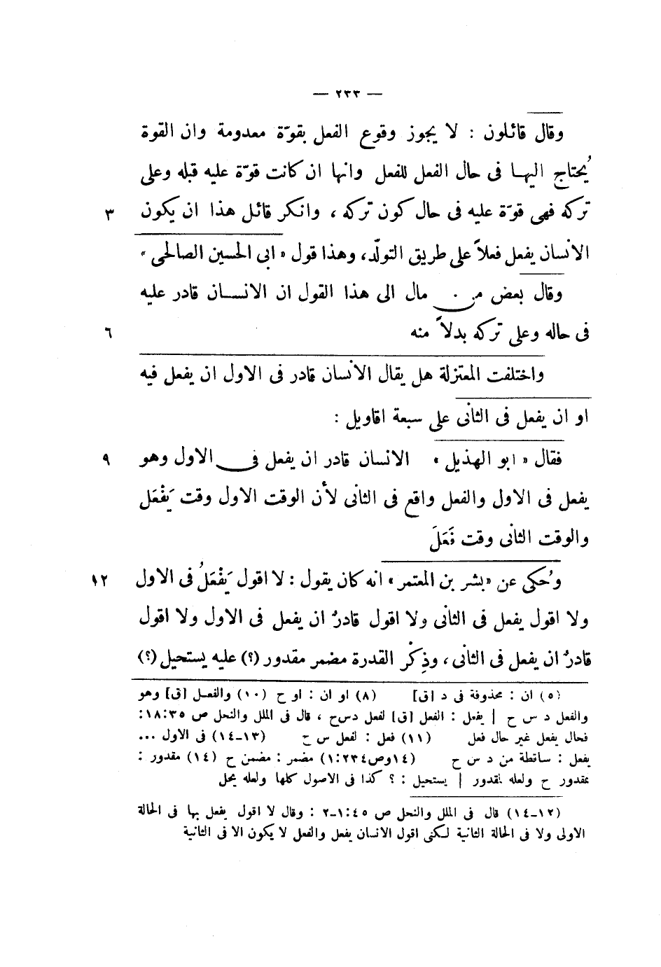 واختلفت المعتزلة هل يقال الإنسان قادر في الأول أن يفعل فيه أو أن يفعل في الثاني على سبعة أقاويل: