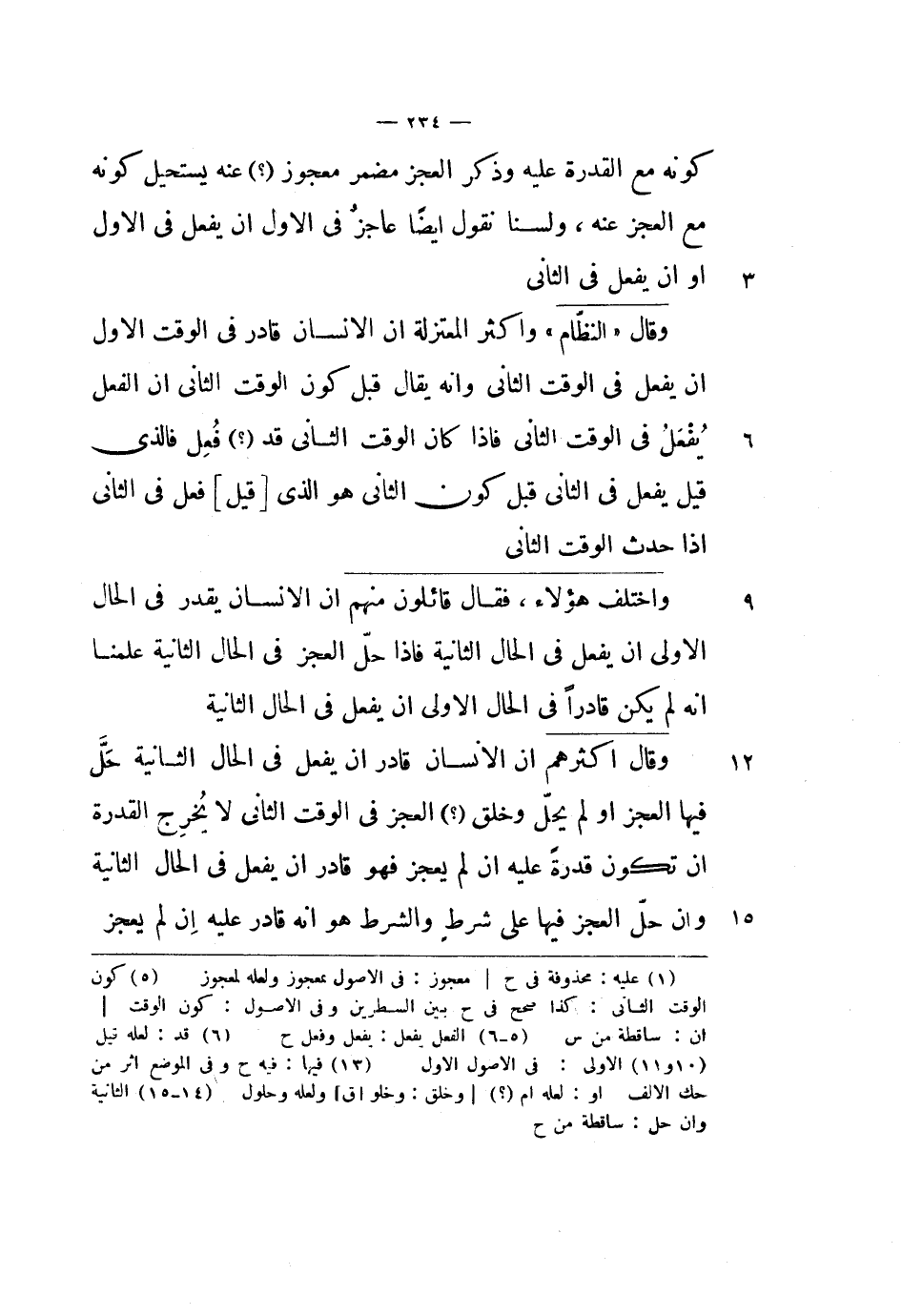 واختلف هؤلاء، فقال قائلون منهم أن الإنسان يقدر في الحال الأولى أن يفعل في الحال الثانية فإذا حل العجز في الحال الثانية علمنا أنه لم يكن قادراً في الحال الأولى أن يفعل في الحال الثانية.