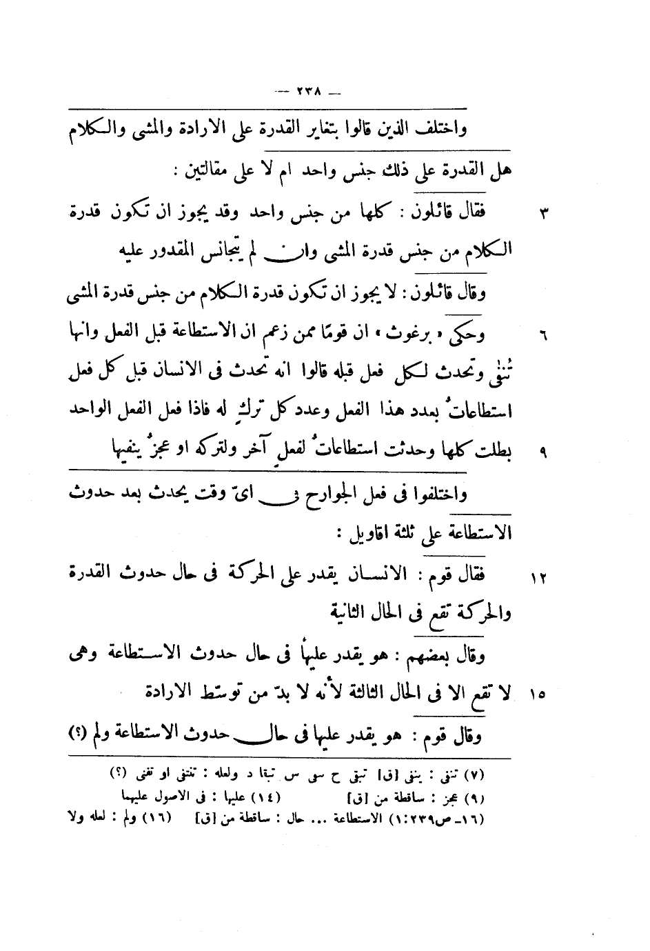 واختلف الذين قالوا بتغاير القدرة على الإرادة والمشي والكلام هل القدرة على ذلك جنس واحد أم لا على مقالتين: