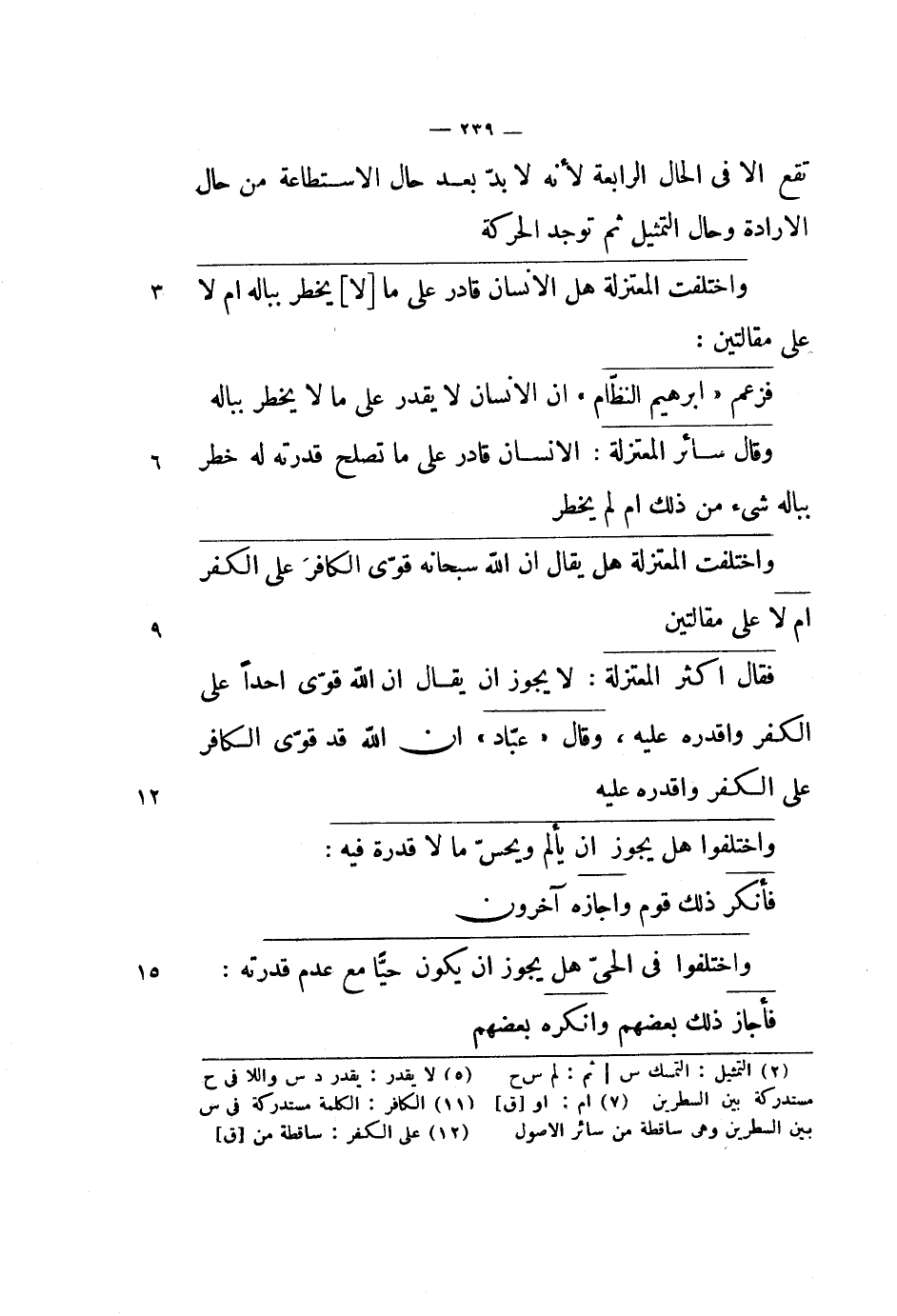 واختلفت المعتزلة هل الإنسان قادر على ما لا يخطر بباله أم لا على مقالتين: