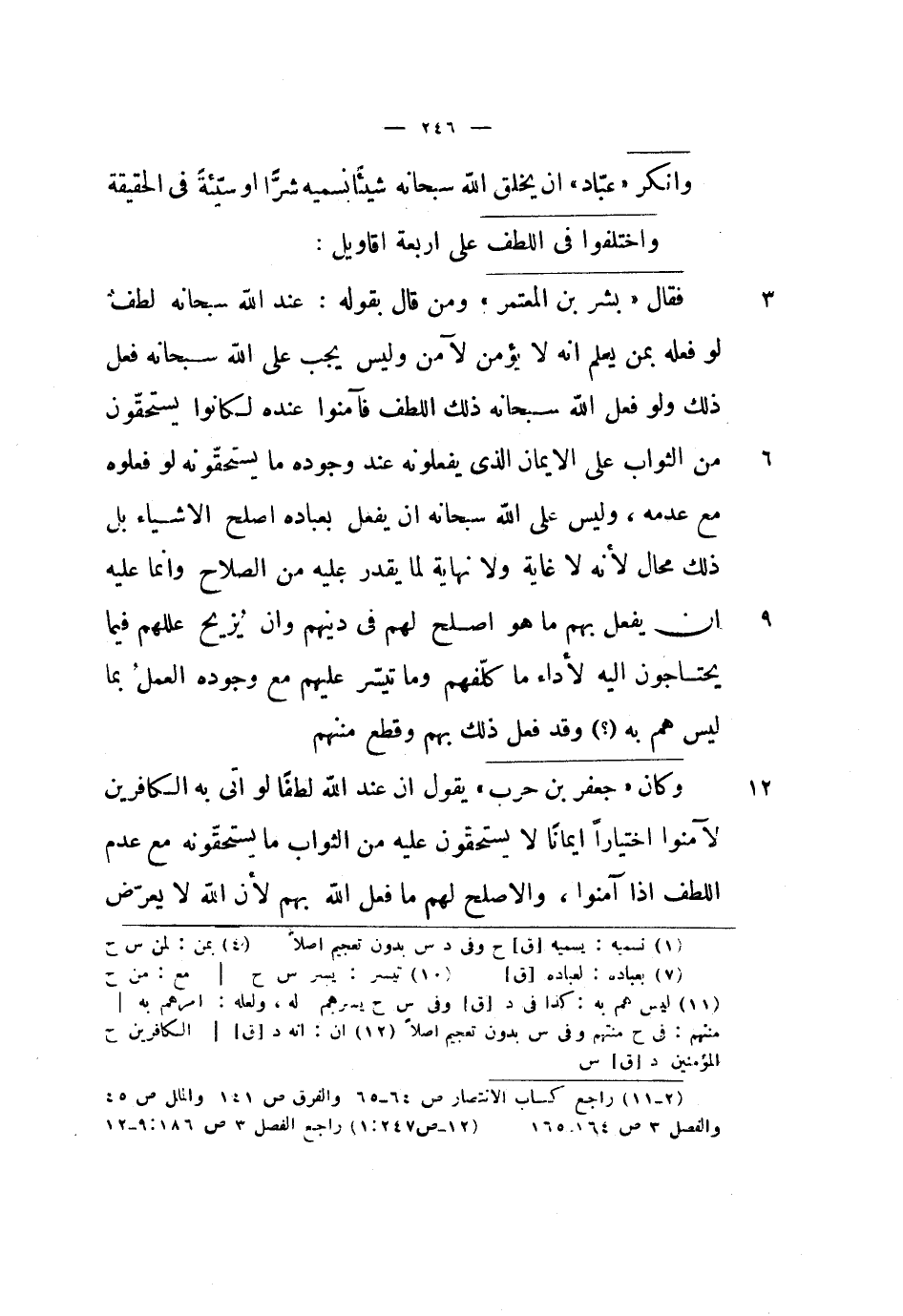 وكان جعفر بن حرب يقول أن عند الله لطفاً لو أتى به الكافرين لآمنوا اختياراً