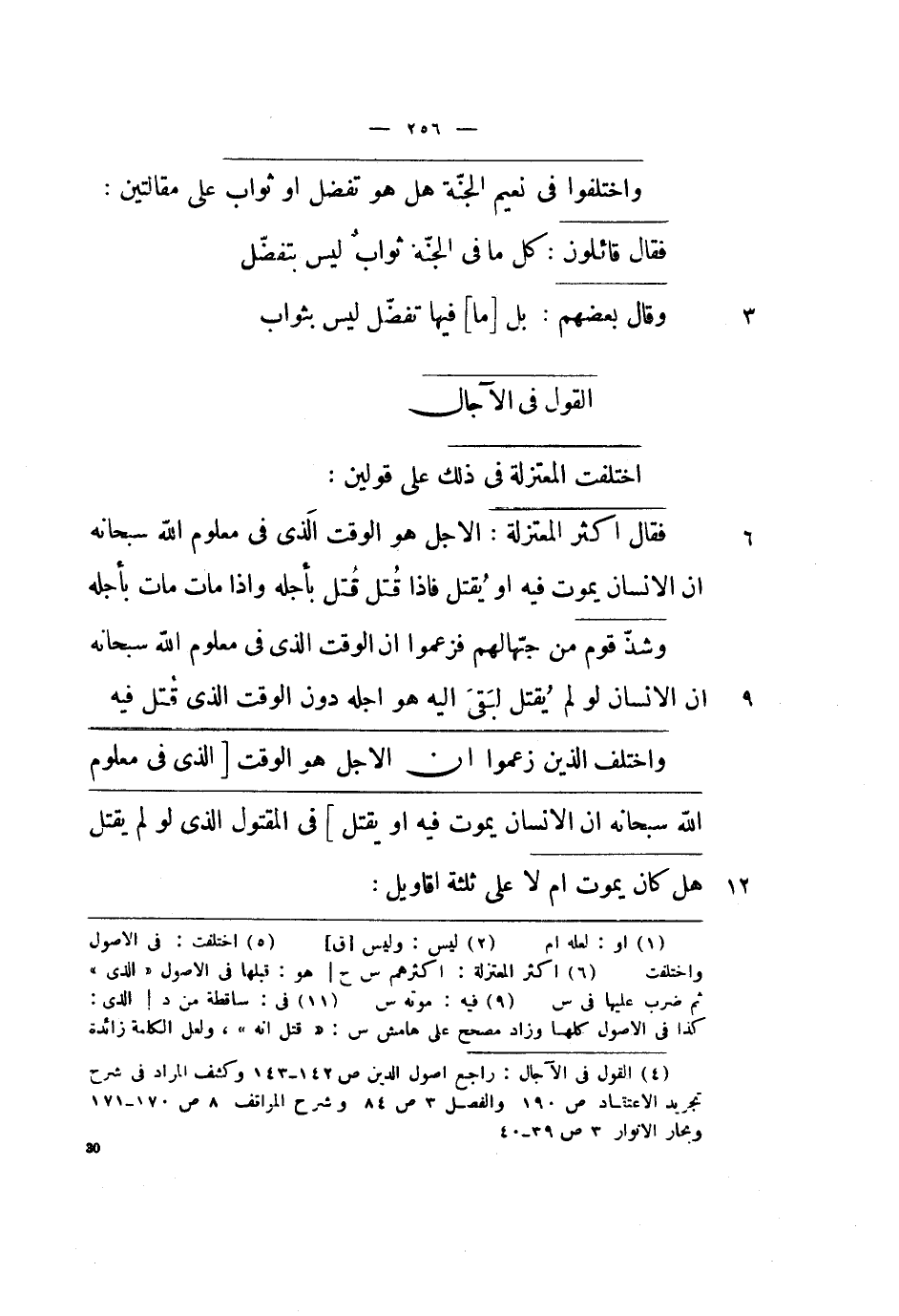 واختلف الذين زعموا أن الأجل هو الوقت الذي في معلوم الله سبحانه أن الإنسان يموت فيه أو يقتل في المقتول الذي لو لم يقتل هل كان يموت أم لا على ثلاثة أقاويل: