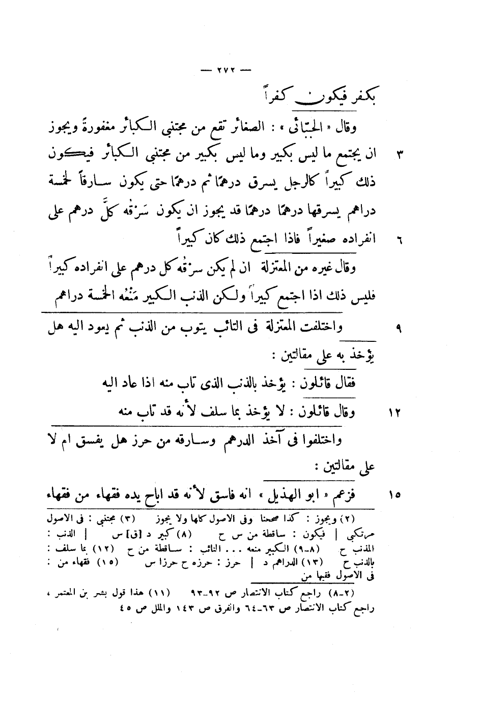 وقال غيره من المعتزلة: إن لم يكن سرقه كل درهم على انفراده كبيراً فليس ذلك إذا اجتمع كبيراً ولكن الذنب الكبير منعه الخمسة دراهم.