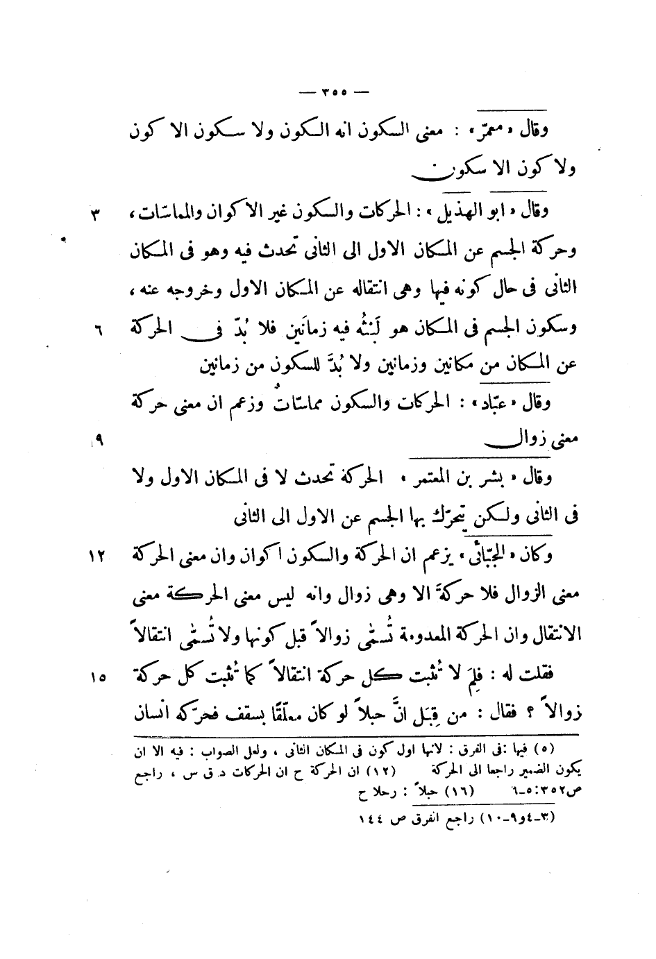 وقال بشر بن المعتمر: الحركة تحدث لا في المكان الأول ولا في الثاني ولكن يتحرك بها الجسم عن الأول إلى الثاني.