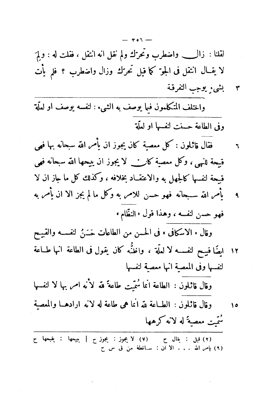 واختلف المتكلمون فيما يوصف به الشيء: لنفسه يوصف أو لعلة وفي الطاعة حسنت لنفسها أو لعلة.