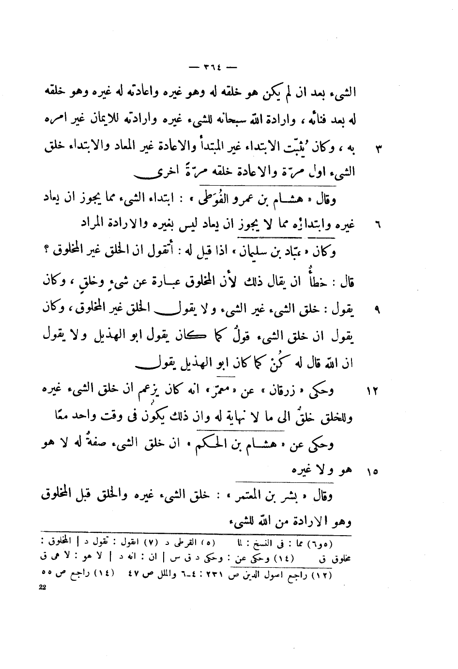 وحكى زرقان عن معمر أنه كلن يزعم أن خلق الشيء غيره وللخلق خلق إلى ما