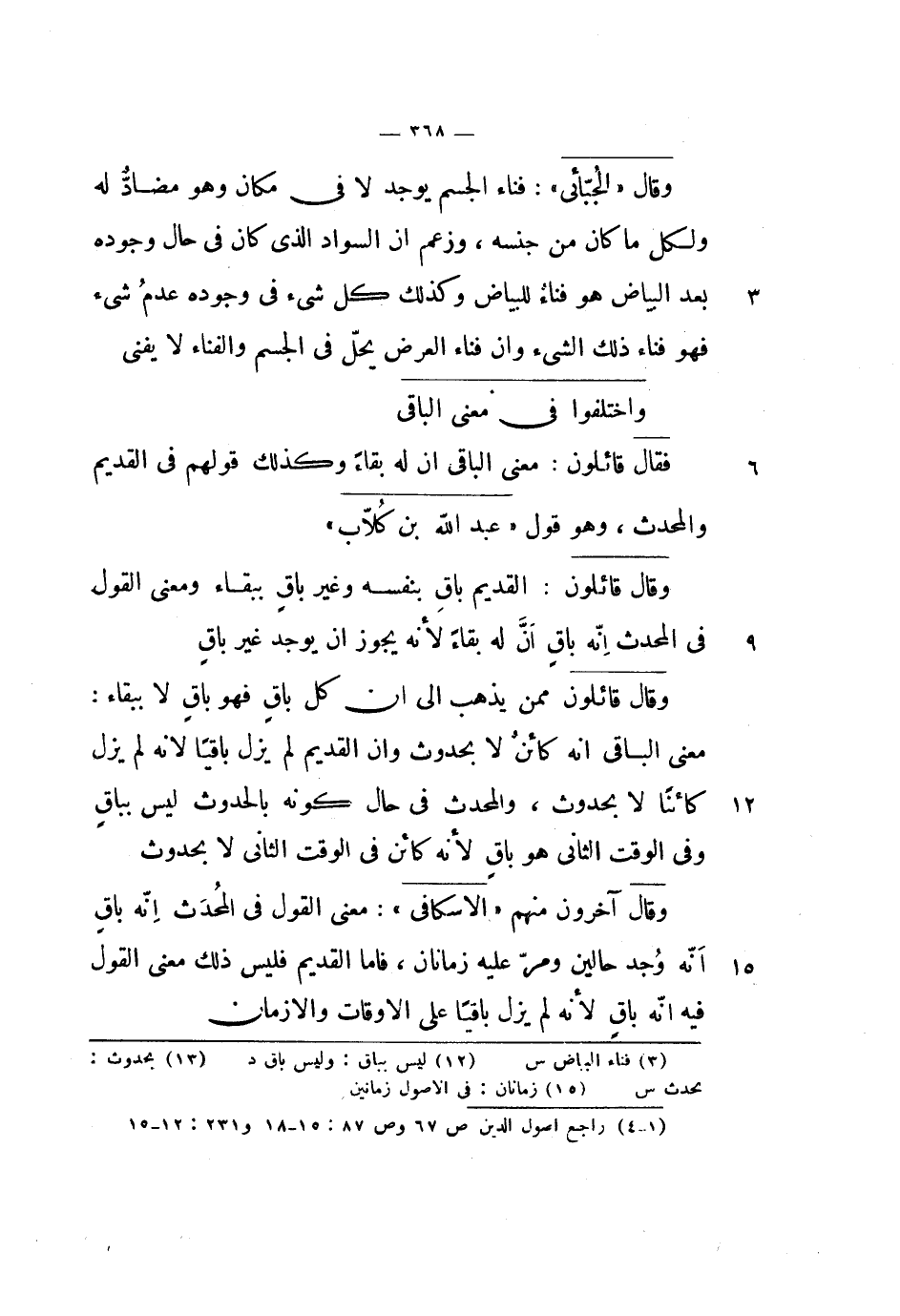 فقال قائلون: معنى الباقي أن له بقاء وكذلك قولهم في القديم والمحدث، وهو قول عبد الله بن كلاب.