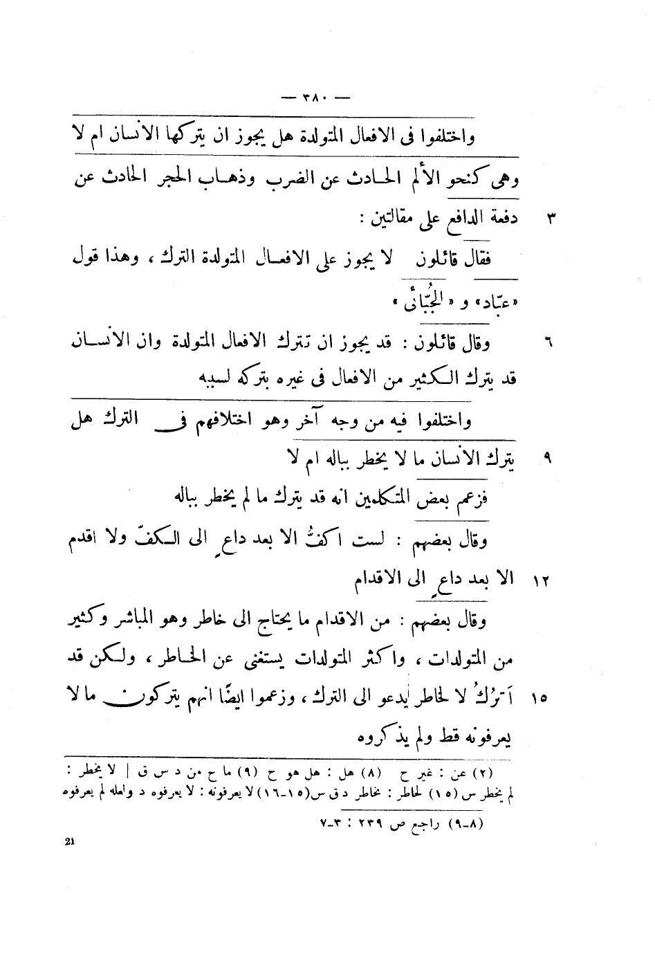 وقال قائلون: قد يجوز أن تترك الأفعال المتولدة وأن الإنسان قد يترك الكثير من الأفعال في غيره بتركه لسببه.