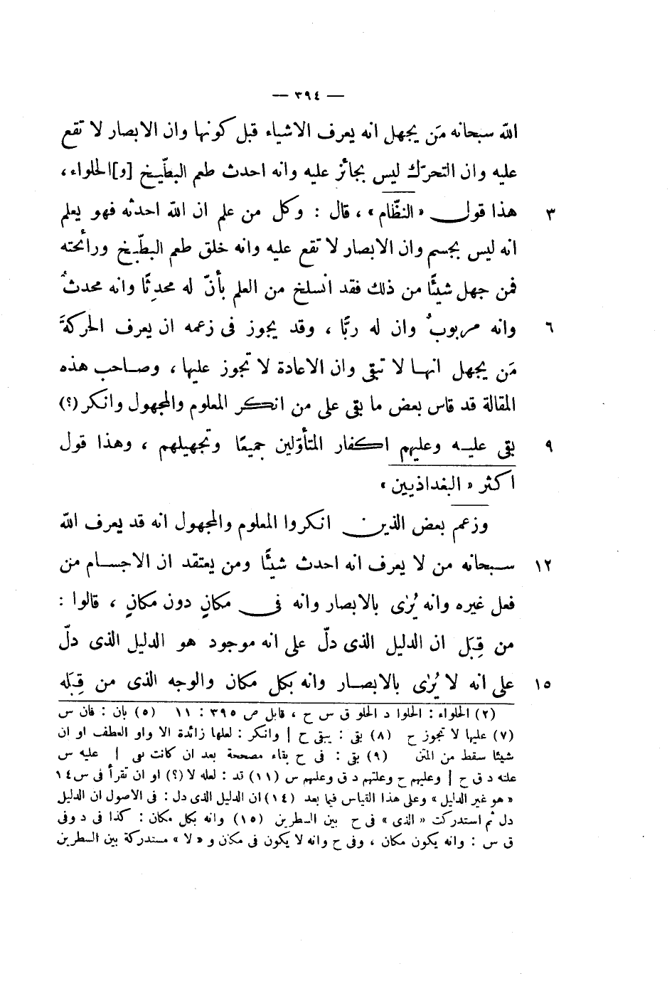 الله سبحانه من يجهل أنه يعرف الأشياء قبل كونها وأن الأبصار لا تقع عليه وأن التحرك ليس بجائز عليه وأنه أحدث طعم الطبيخ والحلواء، هذا قول النظام، قال: وكل من علم أن الله أحدثه فهو يعلم أنه ليس بجسم وأن الأبصار لا تقع عليه وأنه خلق طعم البطيخ ورائحته فمن جهل شيئاً من ذلك فقد انسلخ من العلم بأن له محدثاً وأنه محدث
