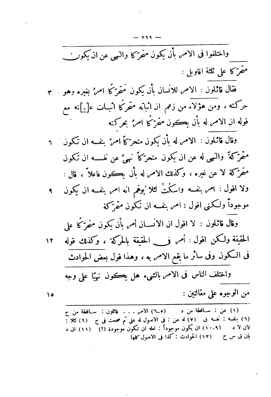 وقال قائلون: الأمر له بأن يكون متحركاً أمر بنفسه أن تكون متحركة والنهي له عن أن يكون متحركاً نهي عن نفسه أن تكون متحركة لا عن غيره، وكذلك الأمر له بأن يكون فاعلاً، قال: ولا أقول: أمر بنفسه وأسكت لئلا يوهم أنه أمر بنفسه أن يكون موجوداً ولكني أقول: أمر بنفسه أن تكون متحركة.