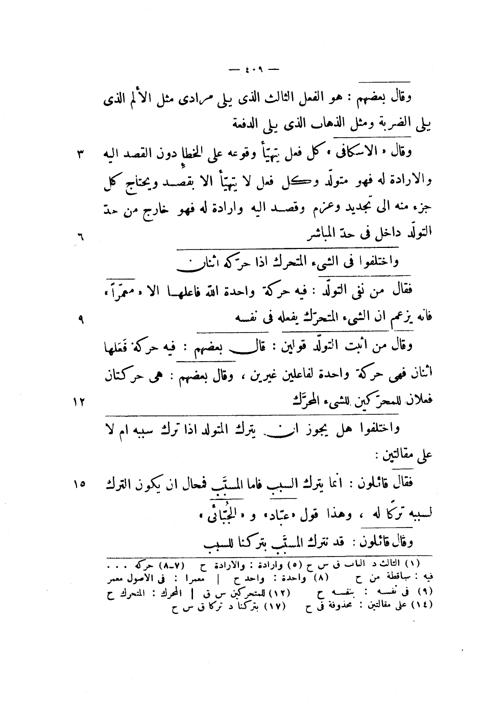 وقال الإسكافي: كل فعل يتهيأ وقوعه على الخطأ دون القصد إليه والإرادة له فهو متولد وكل فعل لا يتهيأ إلا بقصد ويحتاج كل جزء منه إلى تجديد وعزم وقصد إليه وإرادة له فهو خارج من حد التولد داخل في حد المباشر.