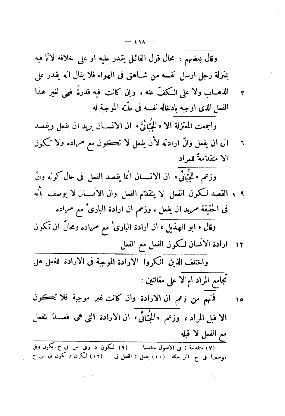 وزعم الجبائي أن الإنسان إنما يقصد الفعل في حال كونه وأن القصد لكون الفعل لا يتقدم الفعل وأن الإنسان لا يوصف بأنه في الحقيقة مريد أن يفعل، وزعم أن إرادة البارئ مع مراده.