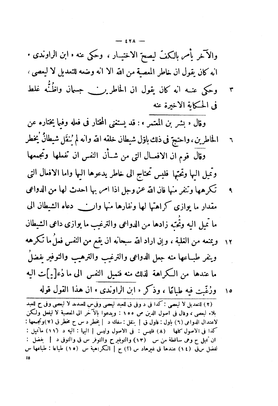 منها وإن دعاه الشيطان إلى ما تميل إليه وتحبه زادها من الدواعي والترغيب ما يوازي داعي الشيطان ويمنعه من الغلبة، وإن أراد الله سبحانه أن يقع من النفس فعل ما تكرهه وينفر طباعها منه جعل الدواعي والترغيب والترهيب والتوفير يفضل ما عندها من الكراهة لذلك منه فتميل النفس إلى ما دعيت إليه ورغبت فيه طباعاً، وذكر ابن الراوندي أن هذا القول قوله.