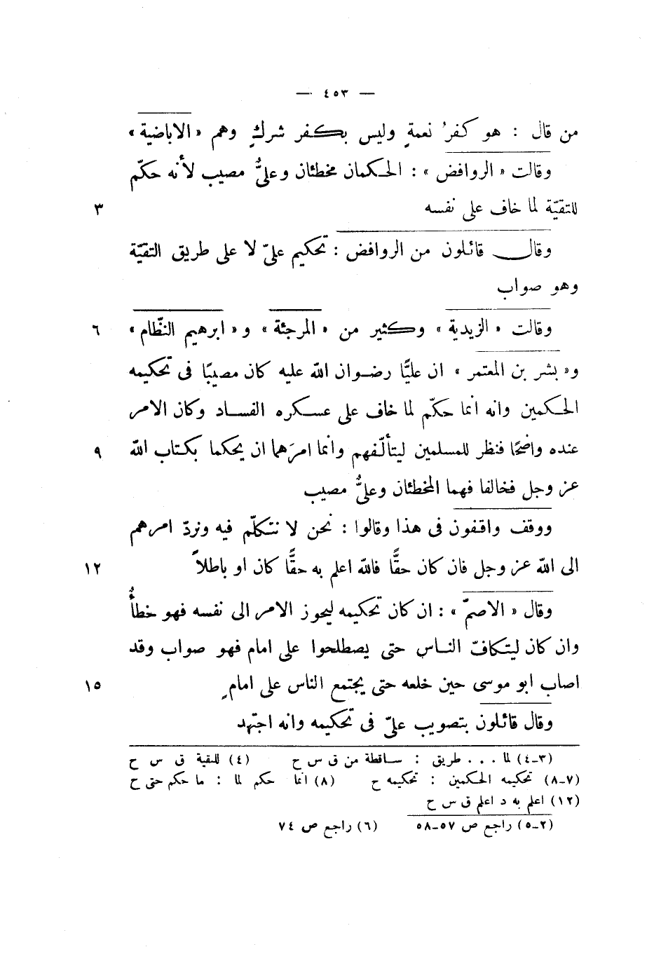 وقالت الزيدية وكثير من المرجئة وإبراهيم النظام وبشر بن المعتمر أن علياً رضوان الله عليه كان مصيباً في تحكيمه الحكمين وأنه إنما حكم لما خاف على عسكره الفساد وكان الأمر عنده واضحاً فنظر للمسلمين ليتألفهم وإنما أمرهما أن يحكما بكتاب الله عز وجل فخالفا فهما المخطئان وعلي مصيب.