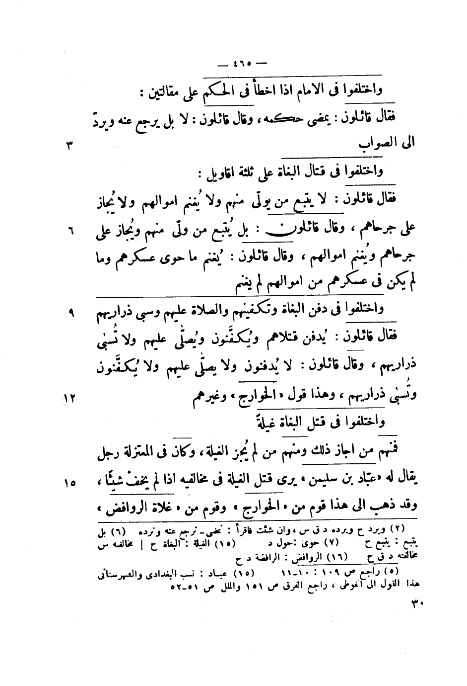 فمنهم من أجاز ذلك ومنهم من لم يجز الغيلة، وكان في المعتزلة رجل يقال له عباد بن سليمان يرى قتل الغيلة في مخالفيه إذا لم يخف شيئاً، وقد ذهب إلى هذا قوم من الخوارج وقوم من غلاة الروافض