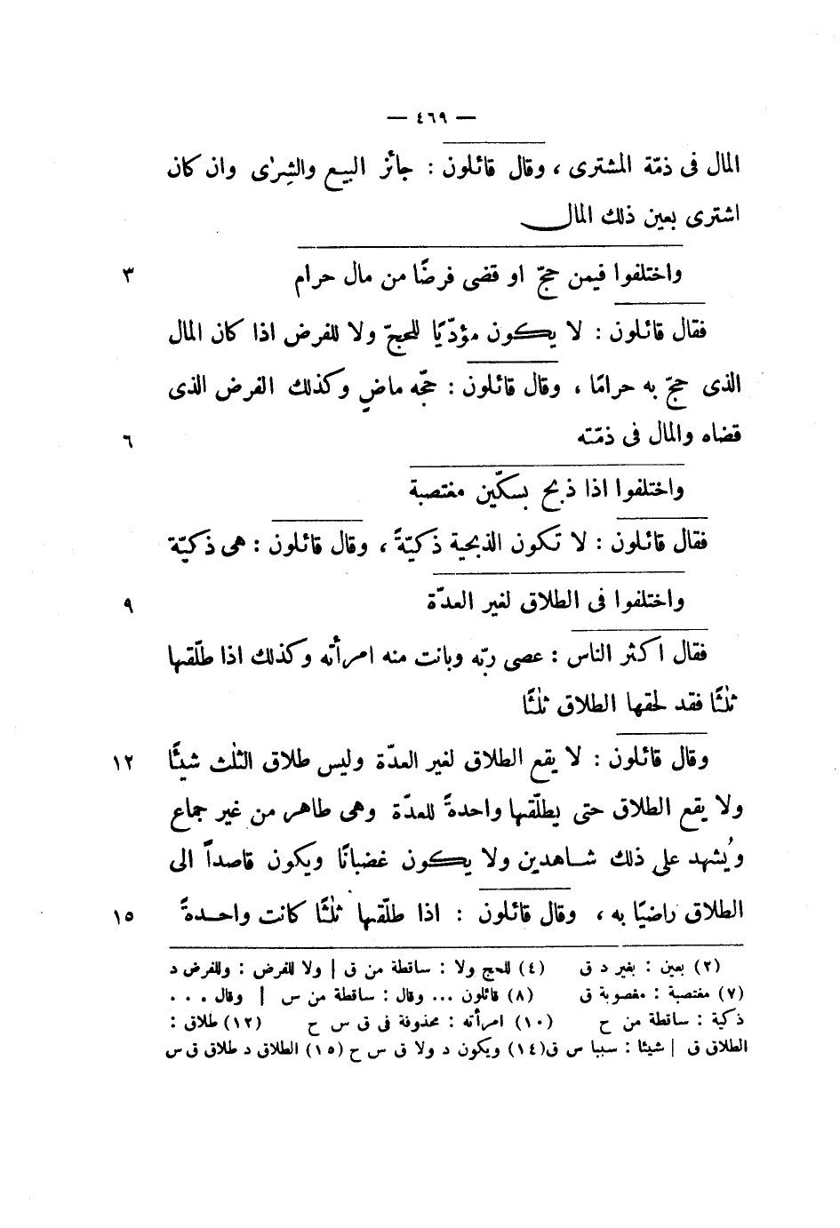 وقال قائلون: لا يقع الطلاق لغير العدة وليس طلاق الثلاث شيئاً ولا يقع الطلاق حتى يطلقها واحدة للعدة وهي طاهر من غير جماع ويشهد على ذلك شاهدين ولا يكون غضباناً ويكون قاصداً إلى الطلاق راضياً به، وقال قائلون: إذا طلقها ثلاثاً كانت واحدة.