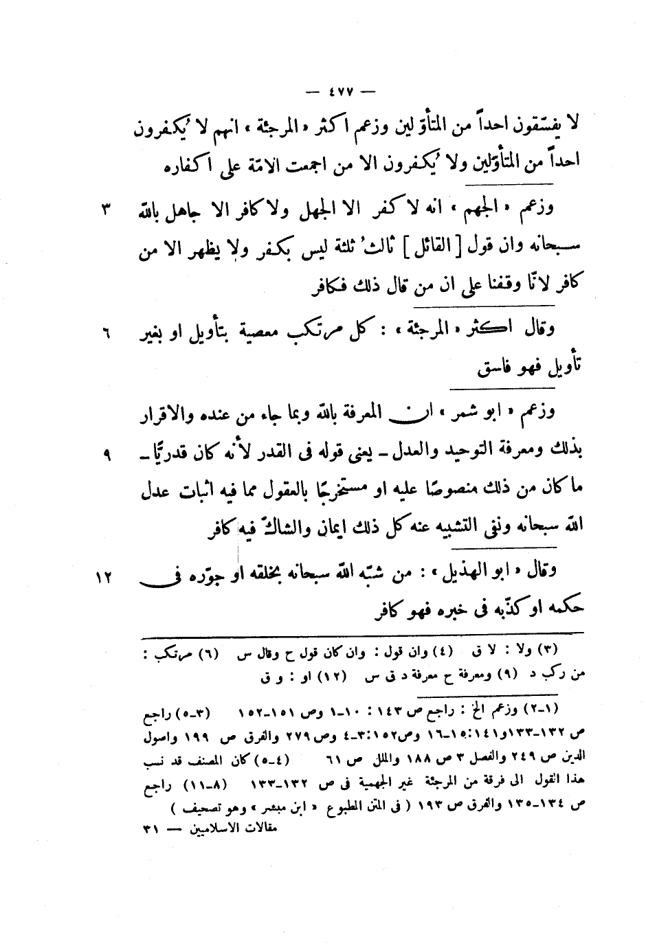 لا يفسقون أحداً من المتأولين وزعم أكثر المرجئة أنهم لا يكفرون أحداً من المتأولين ولا يكفرون إلا من أجمعت الأمة على إكفاره.