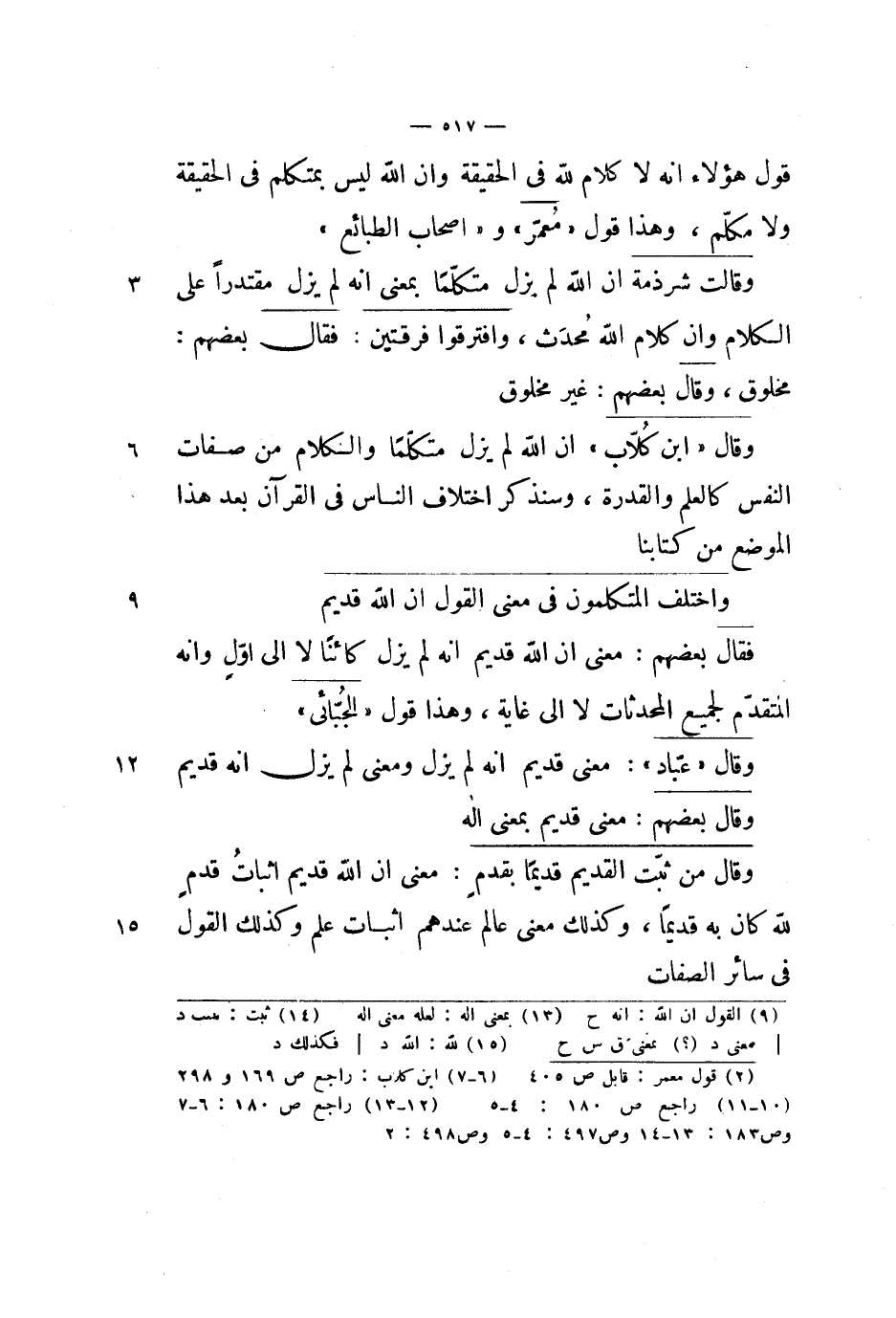 فقال بعضهم: معنى أن الله قديم أنه لم يزل كائناً لا إلى أول وأنه المتقدم لجميع