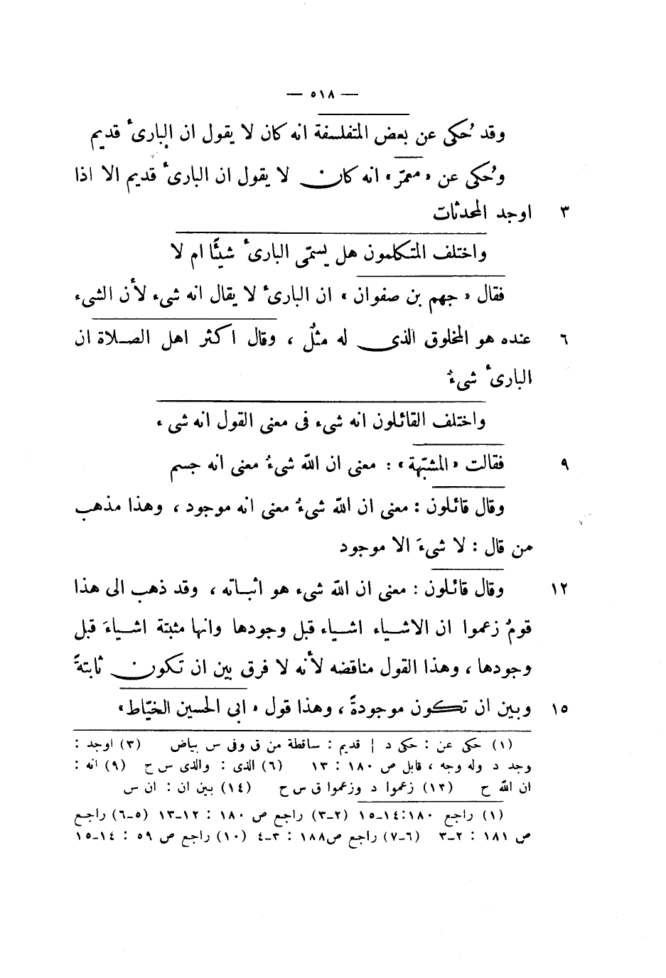 فقال جهم بن صفوان أن البارئ لا يقال أنه شيء لأن الشيء عنده هو المخلوق الذي له مثل، وقال أكثر أهل الصلاة أن البارئ شيء.