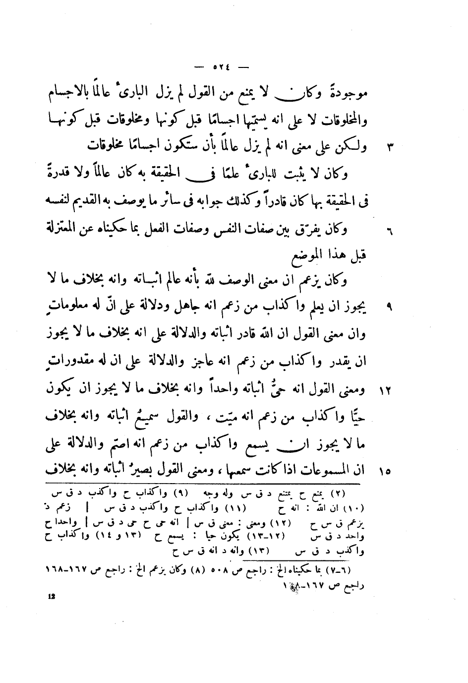 وكان يزعم أن معنى الوصف لله بأنه عالم إثباته وأنه بخلاف ما لا يجوز أن يعلم وإكذاب من زعم أنه جاهل ودلالة على أن له معلومات وأن معنى القول أن الله قادر إثباته والدلالة على أنه بخلاق ما لا يجوز أن يقدر وإكذاب من زعم أنه عاجز والدلالة على أن له مقدورات ومعنى القول أنه حي إثباته واحداً وأنه بخلاف ما لا يجوز أن يكون حياً وإكذاب من زعم أنه ميت، والقول سميع إثباته وأنه بخلاف ما لا يجوز أن يسمع وإكذاب من زعم أنه أصم والدلالة على أن المسموعات إذا كانت سمعها، ومعنى القول بصير إثباته وأنه بخلاف