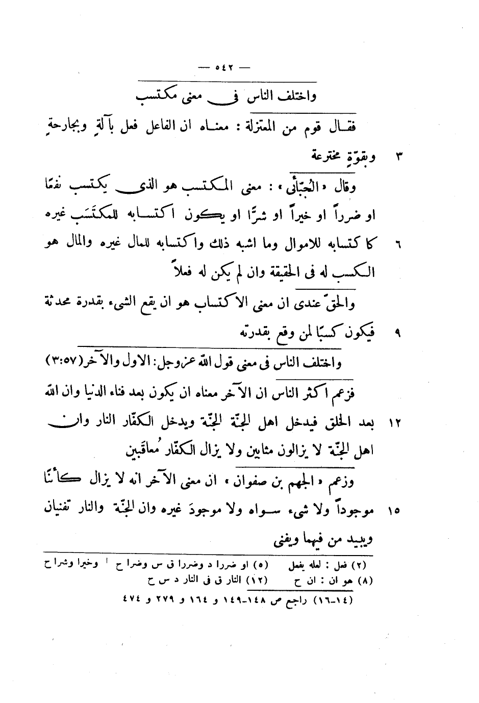 وقال الجبائي: معنى المكتسب هو الذي يكتسب نفعاً أو ضرراً أو خيراً أو شراً أو يكون اكتسابه للمكتسب غيره كاكتسابه للأموال وما أشبه ذلك واكتسابه للمال غيره والمال هو الكسب له في الحقيقة وإن لم يكن له فعلاً.