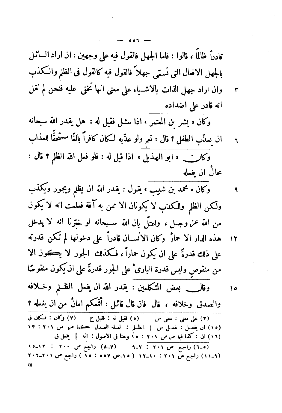 وكان بشر بن المعتمر إذا سئل فقيل له: هل يقدر الله سبحانه أن يعذب الطفل؟ قال: نعم ولو عذبه لكان كافراً بالغاً مستحقاً للعذاب.