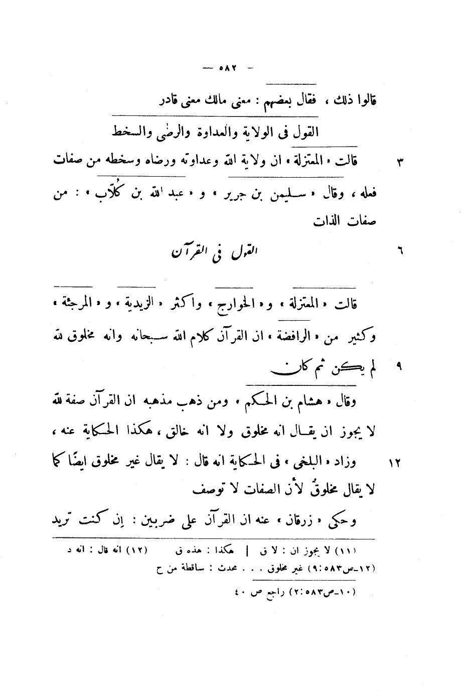 قالت المعتزلة والخوارج وأكثر الزيدية والمرجئة وكثير من الرافضة أن القرآن كلام الله سبحانه وأنه مخلوق لله لم يكن ثم كان.