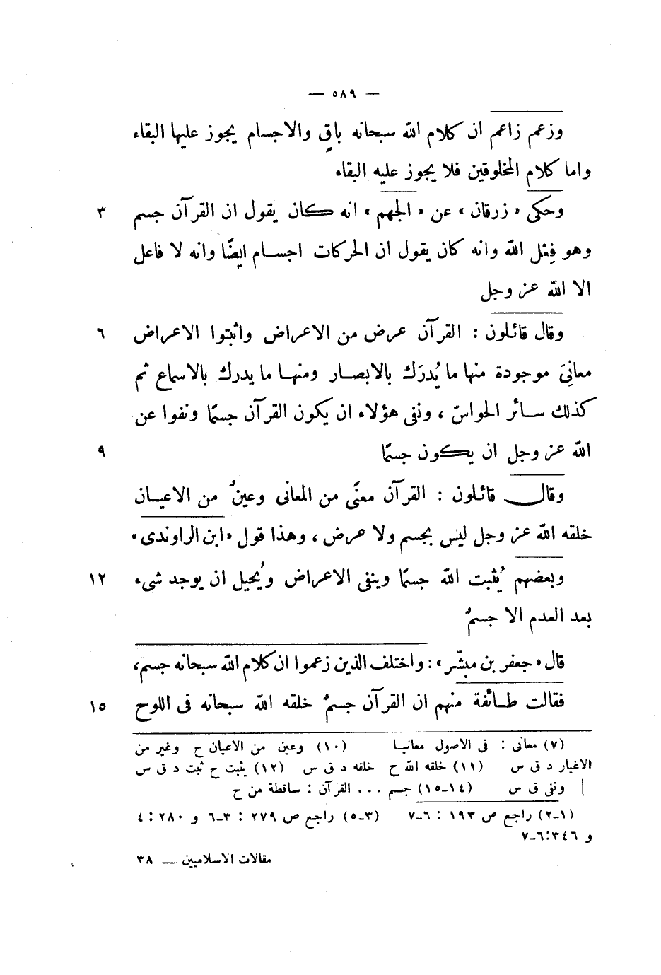 قال جعفر بن مبشر: واختلف الذين زعموا أن كلام الله سبحانه جسم، فقالت طائفة منهم أن القرآن جسم خلقه الله سبحانه في اللوح