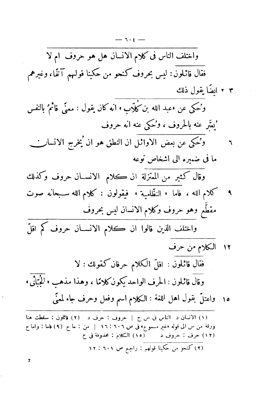 واختلف الناس في كلام الإنسان هل هو حروف أم لا: