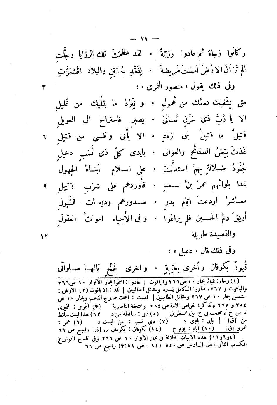 أريق دم الحسين فلم يراعوا ... وفي الأحياء أموات العقول
