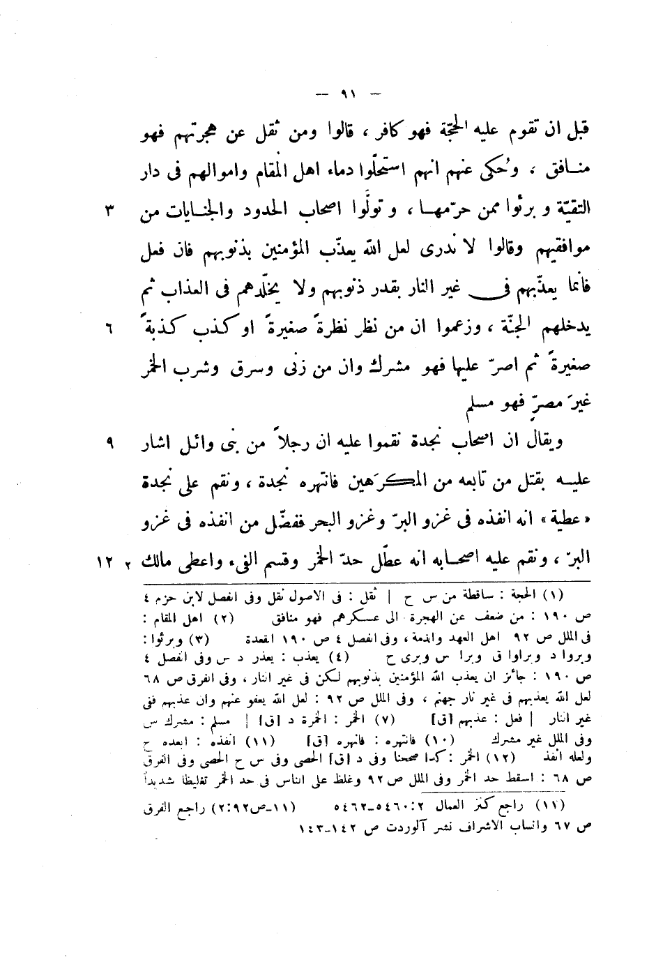والجنايات من موافقيهم وقالوا: لا ندري لعل الله يعذب المؤمنين بذنوبهم فإن فعل فإنما يعذبهم في غير النار بقدر ذنوبهم ولا يخلدهم في العذاب ثم يدخلهم الجنة، وزعموا أن من نظر نظرة صغيرة أو كذب كذبة صغيرة ثم أصر عليها فهو مشرك وأن من زنى وسرق وشرب الخمر غير مصر فهو مسلم.
